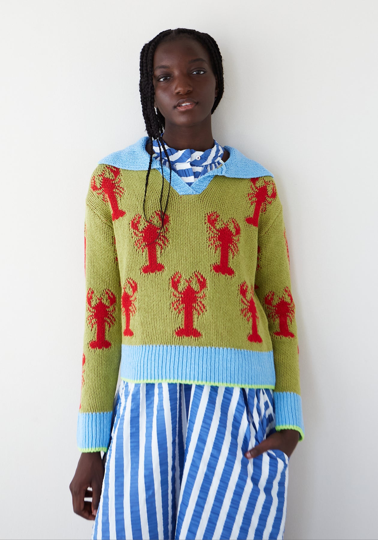 Corte recto, manga larga y cuello marinero con solapa ancha.