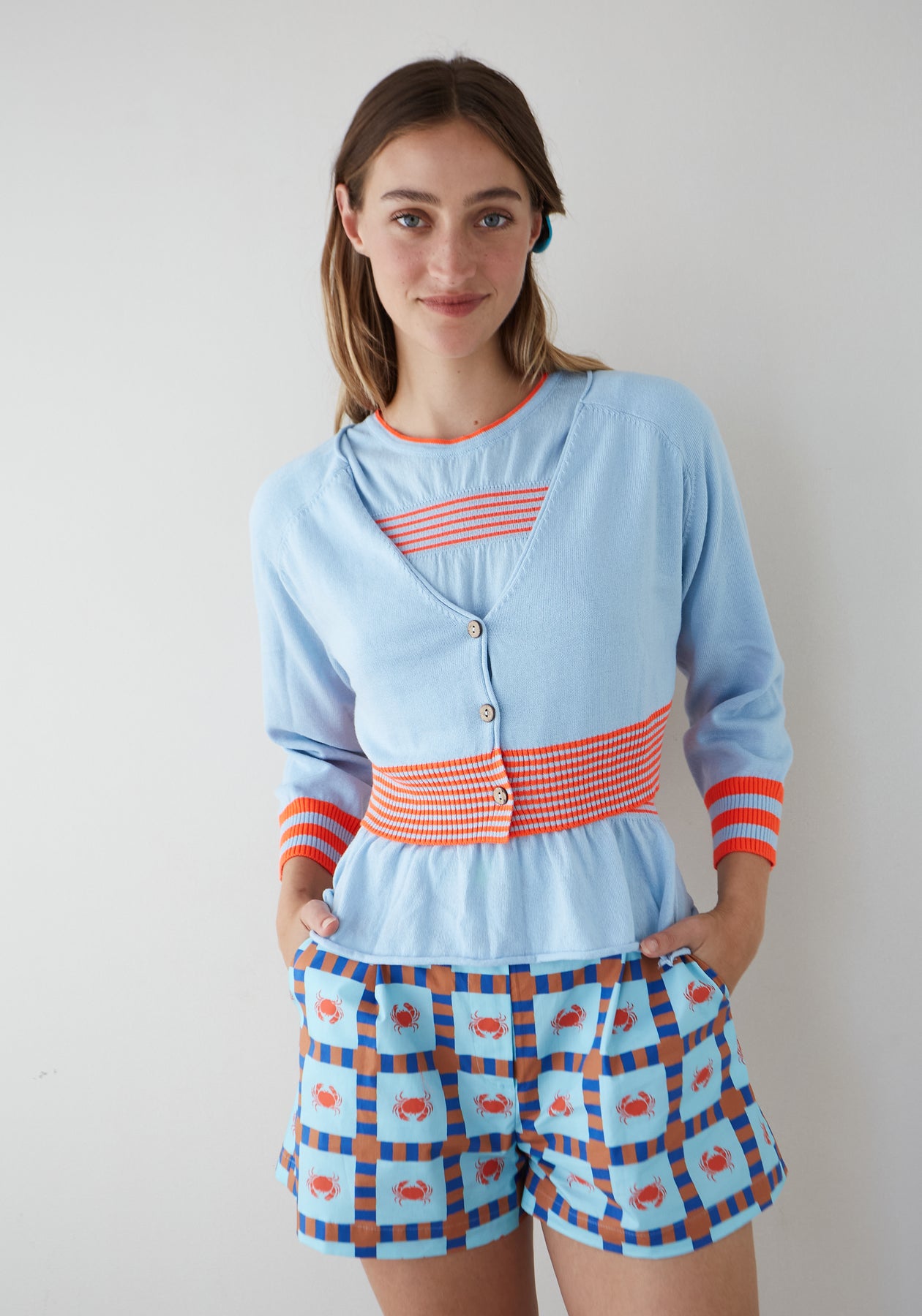 Cárdigan azul cielo de dos piezas