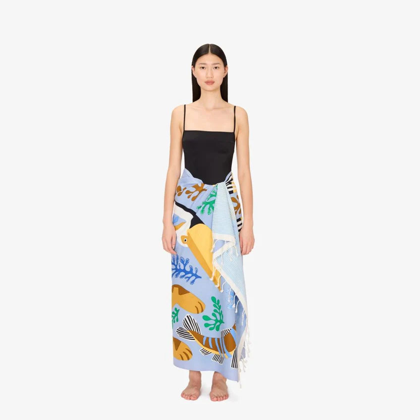 Usada como toalla de baño o de playa, pareo, manta de cama