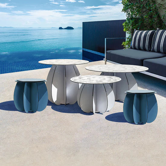 El taburete de exterior Gardenia está disponible en dos alturas: