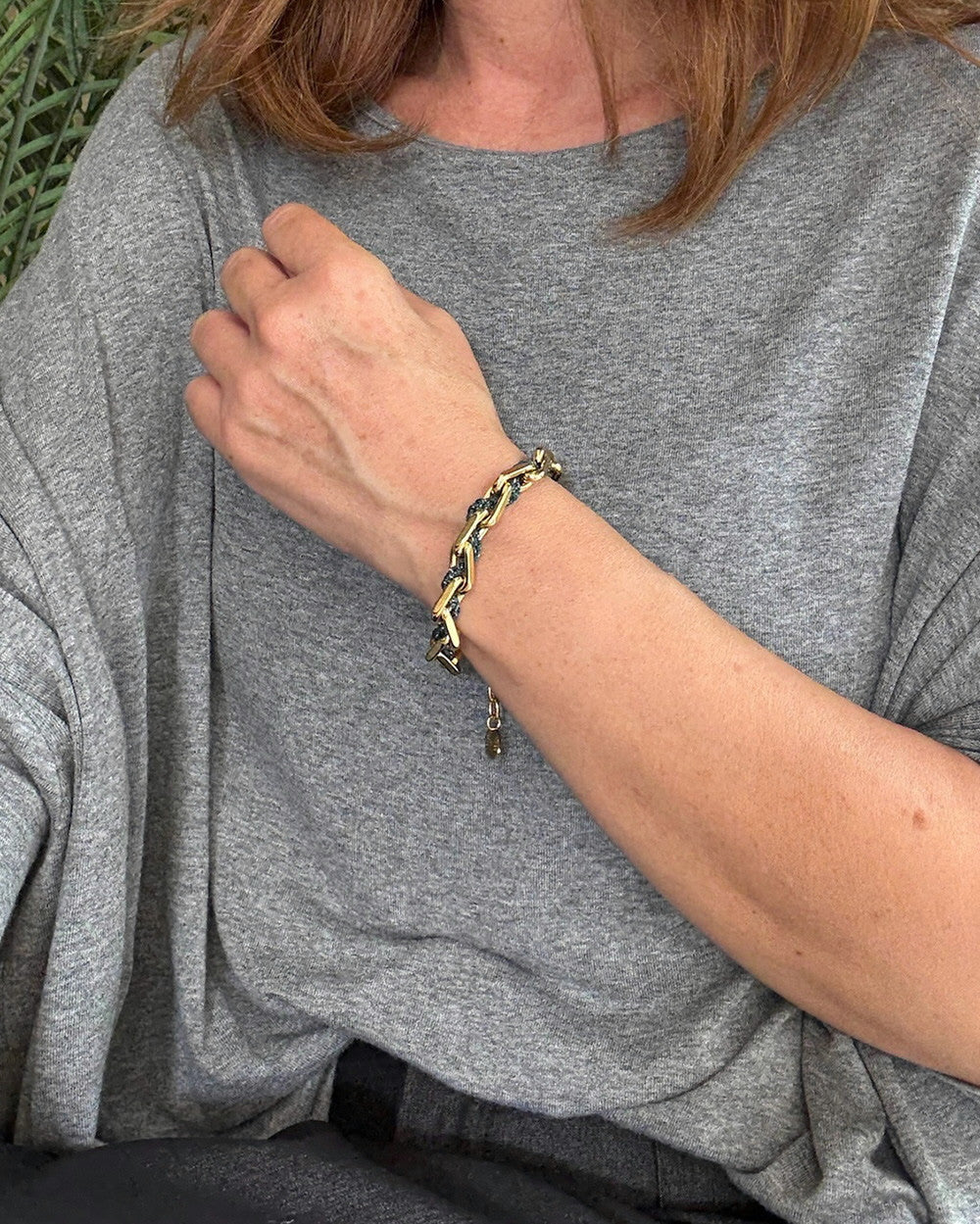 Pulseras con cadena de bronce bañada en oro